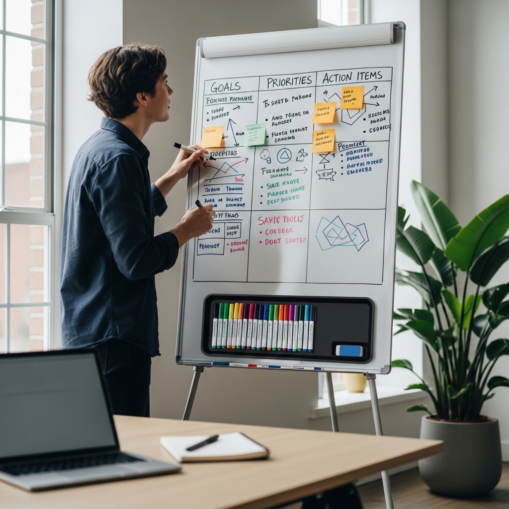 올해 끝에 어떤 모습이 되고 싶은지 3~5가지 영역을 정해요. 커리어, 건강, 재정, 관계, 자기계발 등. 모든 영역을 다 챙기려 하면 아무것도 못 해요. 올해 특별히 집중할 1~2개 영역을 고르는 게 핵심이에요.